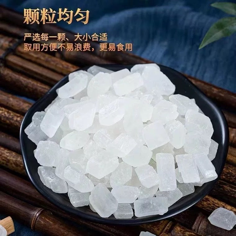 🉐美峰堂单晶冰糖,是用上等的甘蔗原浆熬制而成,色泽淡黄剔透,像水晶的粗胚,闻起来有淡淡蜜香。这才是中药典籍中记载的“补中益气、润肺止咳、养阴生津