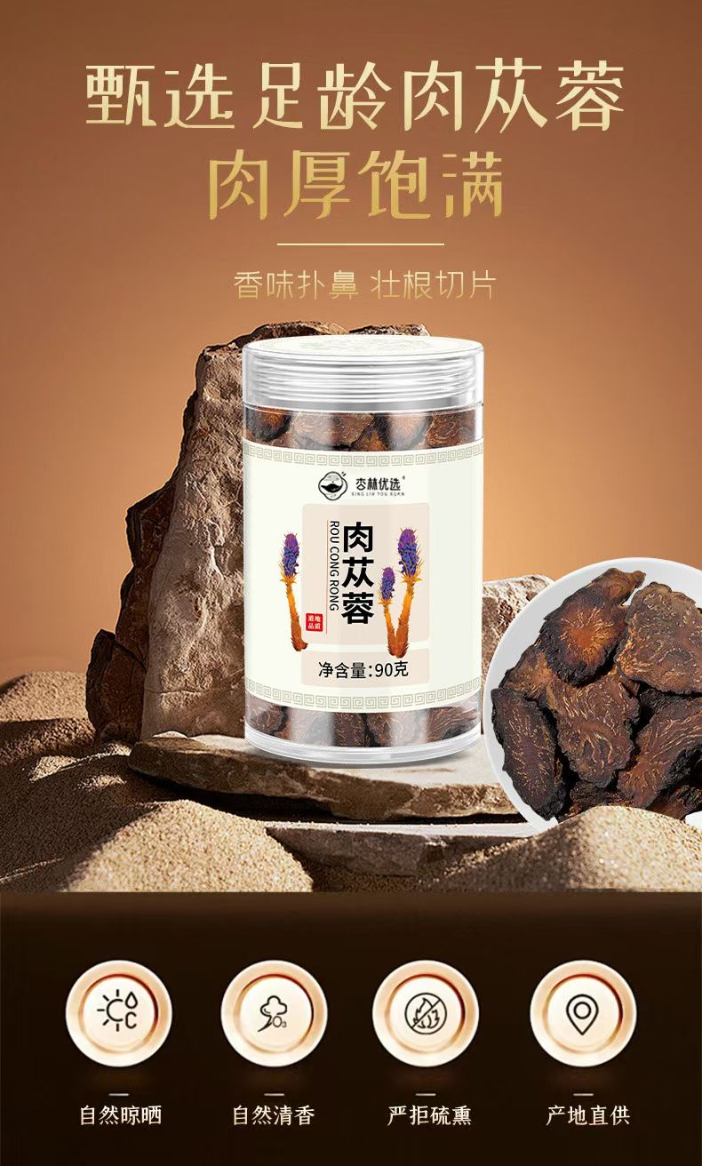 🩵经典黄金组合:肉苁蓉(补肾阳,益精血)搭配黄精(补气养阴,健脾润肺),是传承已久的温和滋补良方,适合日常调养,为身体注入元气活力。