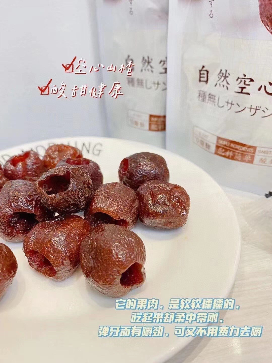 👏👏👏这款山楂是自然原果,没有任何添加剂的,所以吃起来酸酸甜甜,非常好吃,而且去核处理得非常干净,不用担心会卡喉咙! [色色R]